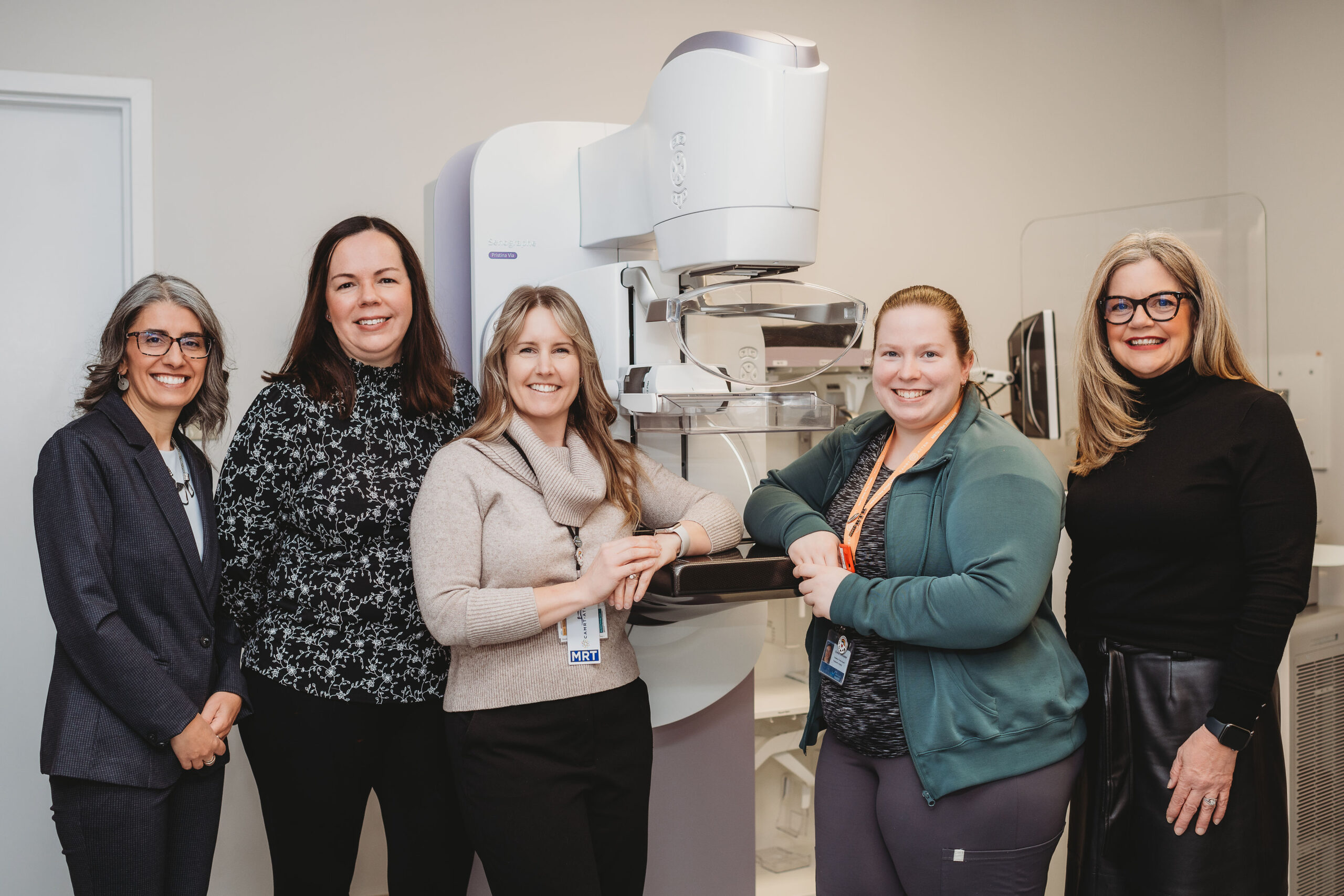 Photo Caption: Standing with the new GE mammography unit at Aberdeen Hospital are Michelle Ferris, Executive Director, Aberdeen Health Foundation; Heather MacDonald, Board Chair, Aberdeen Health Foundation; Miranda Thomson, Manager Diagnostic Imaging; Emma Doncaster, Radiological Technologist; Lisa MacDonald, Former Chair, Aberdeen Health Foundation (left to right). Supported by a $750,000 community investment, the upgraded equipment introduces 3D imaging, helping clinicians detect breast cancer at the earliest possible stage.