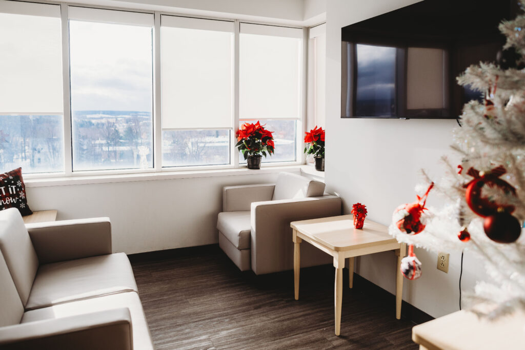 With Darrell’s support, the lounge received a full refresh, complete with new furnishings, updated decor and a plaque honouring Frances. The updates created a more comfortable place for families to sit, visit and take in the view. When the work was finished, Darrell and his family, some visiting from Ontario and Halifax, went together to see the space. “We thought it was beautiful. They did a very good job.”